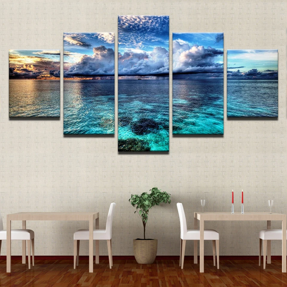 5 шт., настенные модульные картины с изображением океана, заката, п...