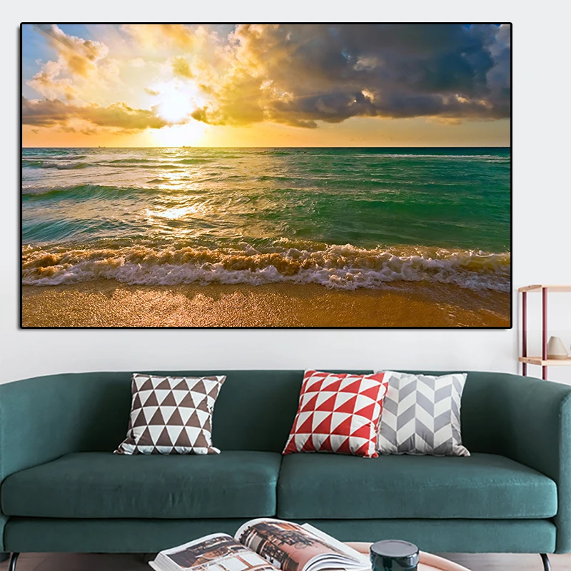 Современное искусство природный пейзаж плакаты и принты восход пейзаж на море декоративные картины настенные художественные картины для гостиной