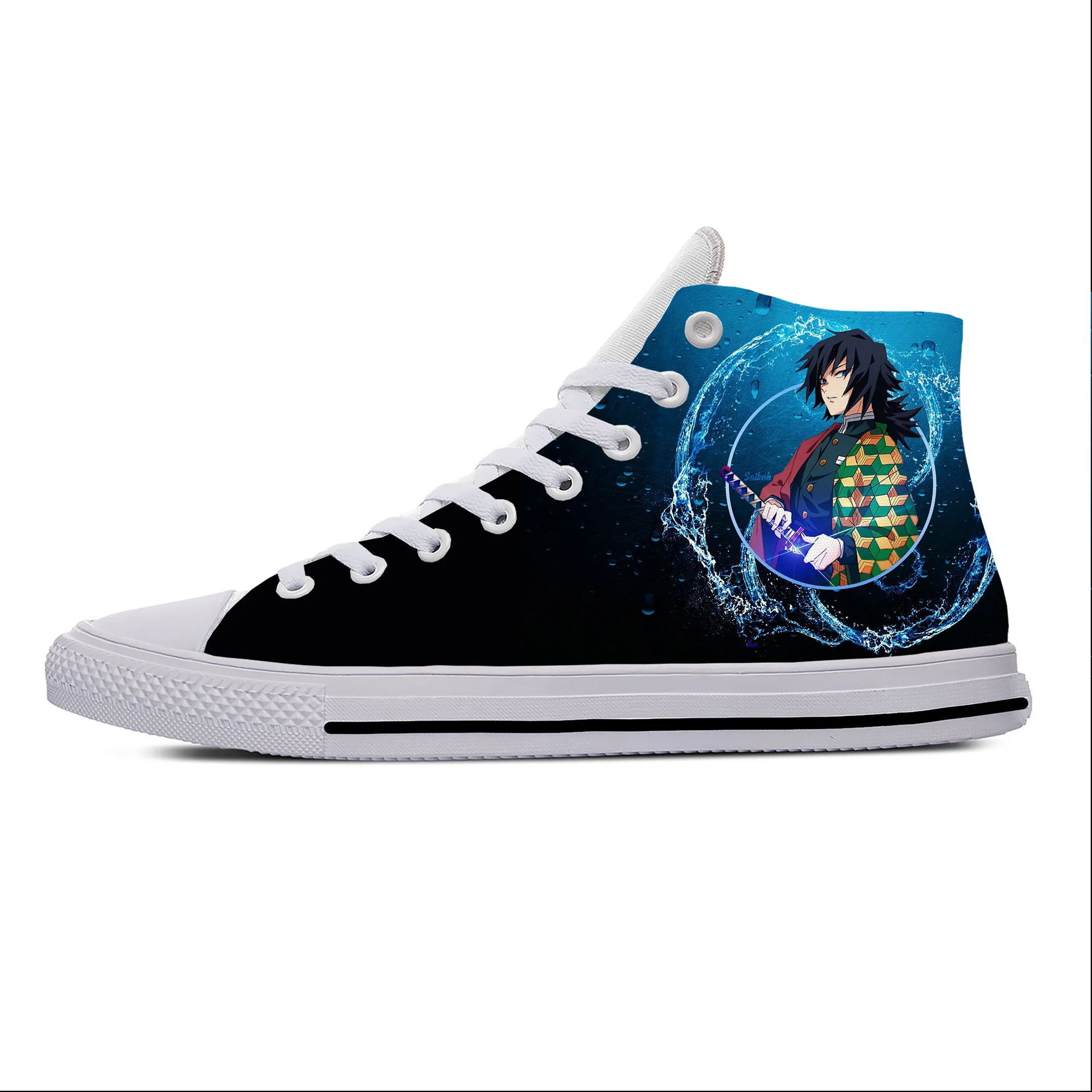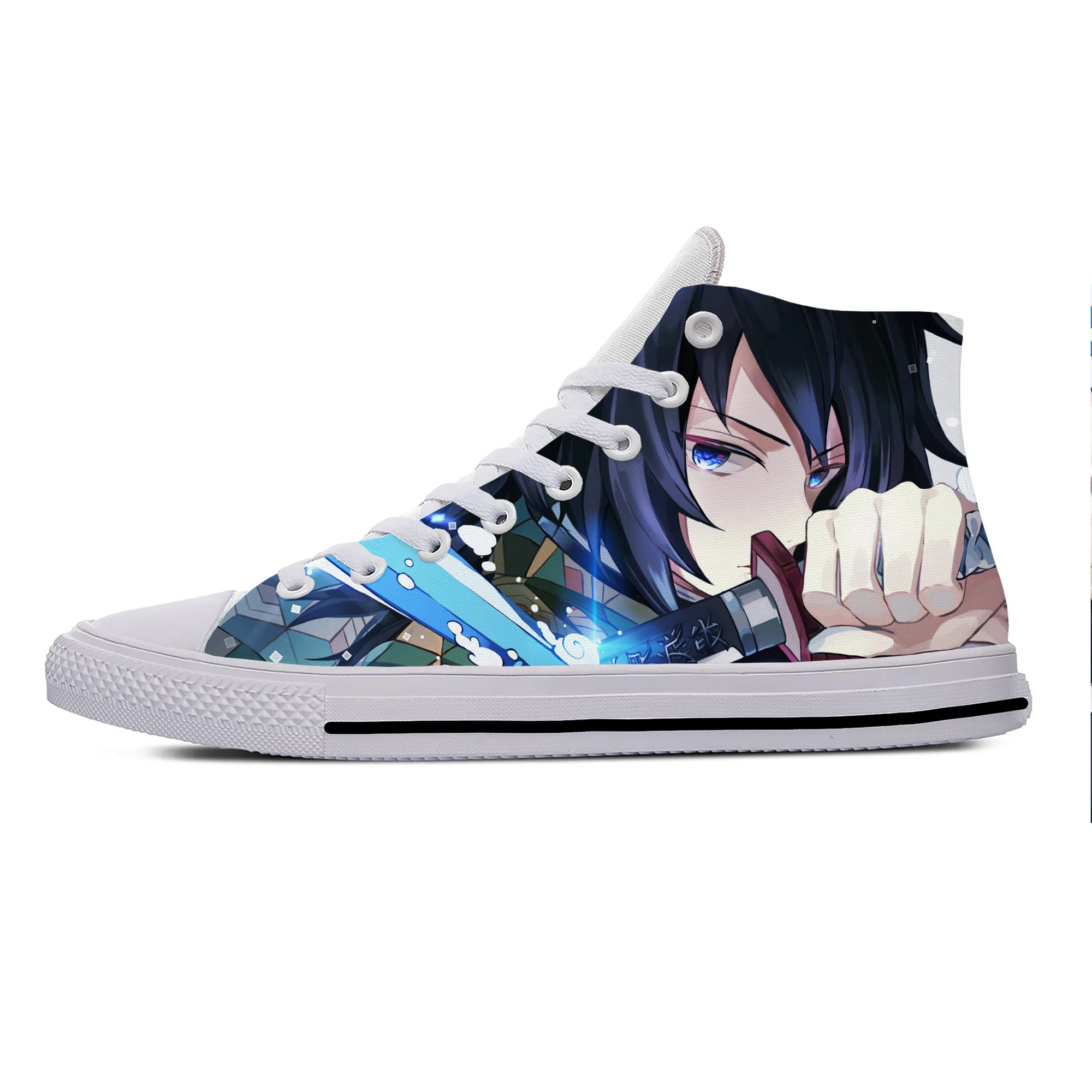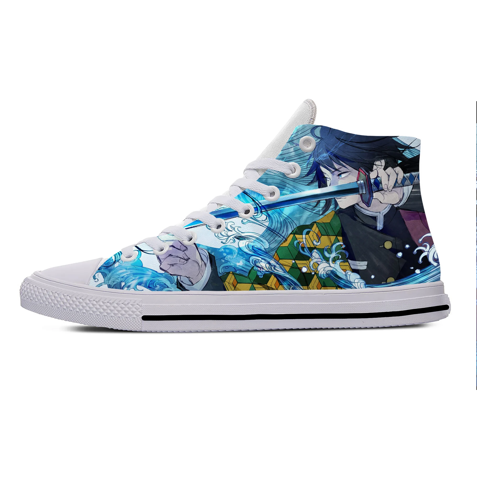 Кроссовки Kimetsu No Yaiba Tomioka Giyu из аниме рассекающий демонов, повседневная Тканевая обувь с высоким верхом, легкие дышащие, с 3D принтом, для мужчин и женщин