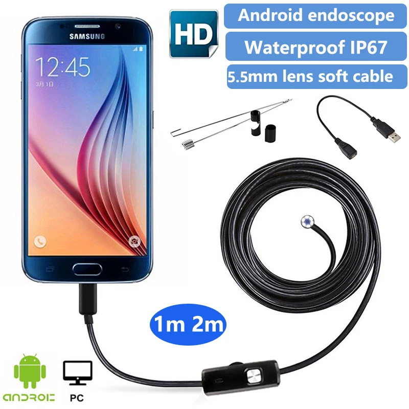 Водонепроницаемый эндоскоп с поддержкой OTG и UVC, 5,5 мм, 1 м, 2 м, 5 м, IP67