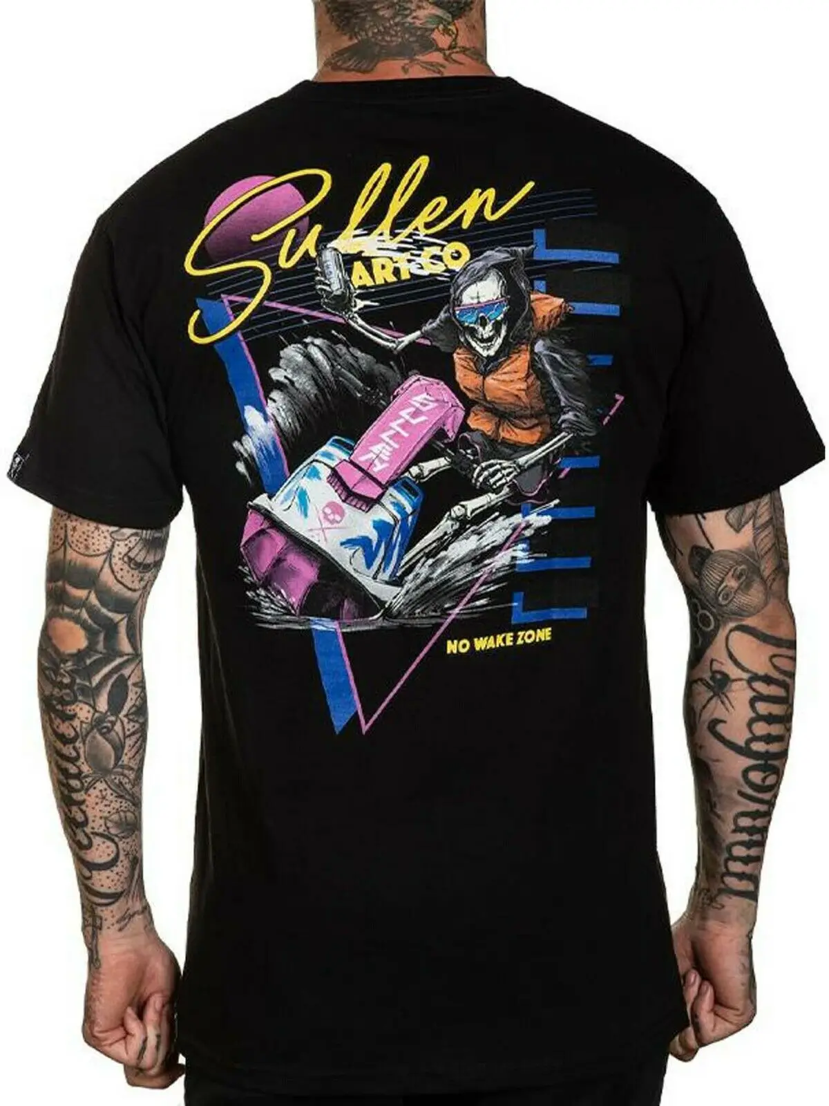 Мужская футболка Sullen с коротким рукавом, без пробуждения, скелет на гидроцикле, тату, футболка в стиле панк, музыка, история, технология топ-теч