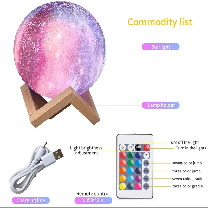 Волшебная звезда лусветильник: Создание 3d-эффекта поверхности Луны на основе астрономических данных со спутника НАСА. Цветной рисунок делает шар ярким и великолепным. Когда свет включен, кажется, что он находится в великолепной галактике. По мере изменения цвета и перспективы он создает волшебный и красочный цвет.