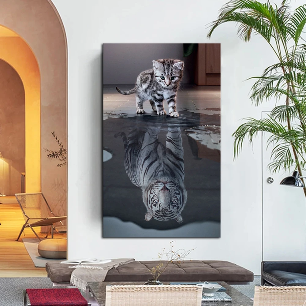 Креативная живопись, искусство, милый кот, отражение, тигр в воде, плакаты, холст, картина, настенные картины, украшение для дома