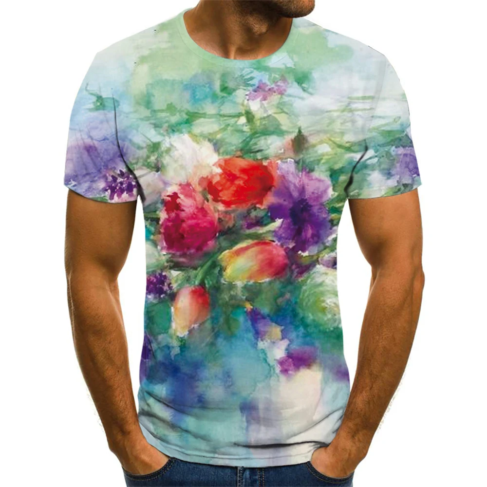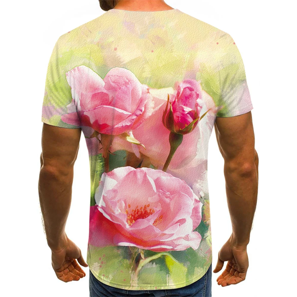 Футболка мужская с 3d принтом, повседневная спортивная рубашка с коротким рукавом, модный топ, естественная сцена с розовыми листьями, 2021