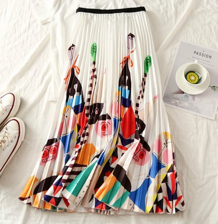 Юбка женская Плиссированная, до середины икры, с мультяшным принтом, Y2K, летняя, 2021