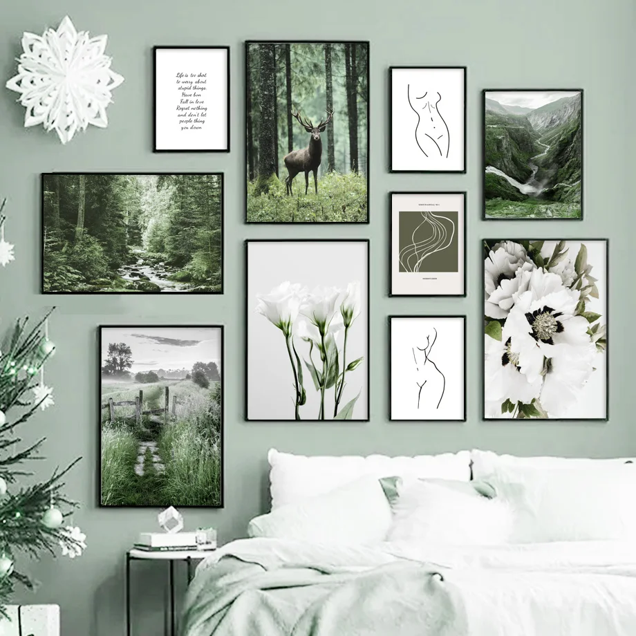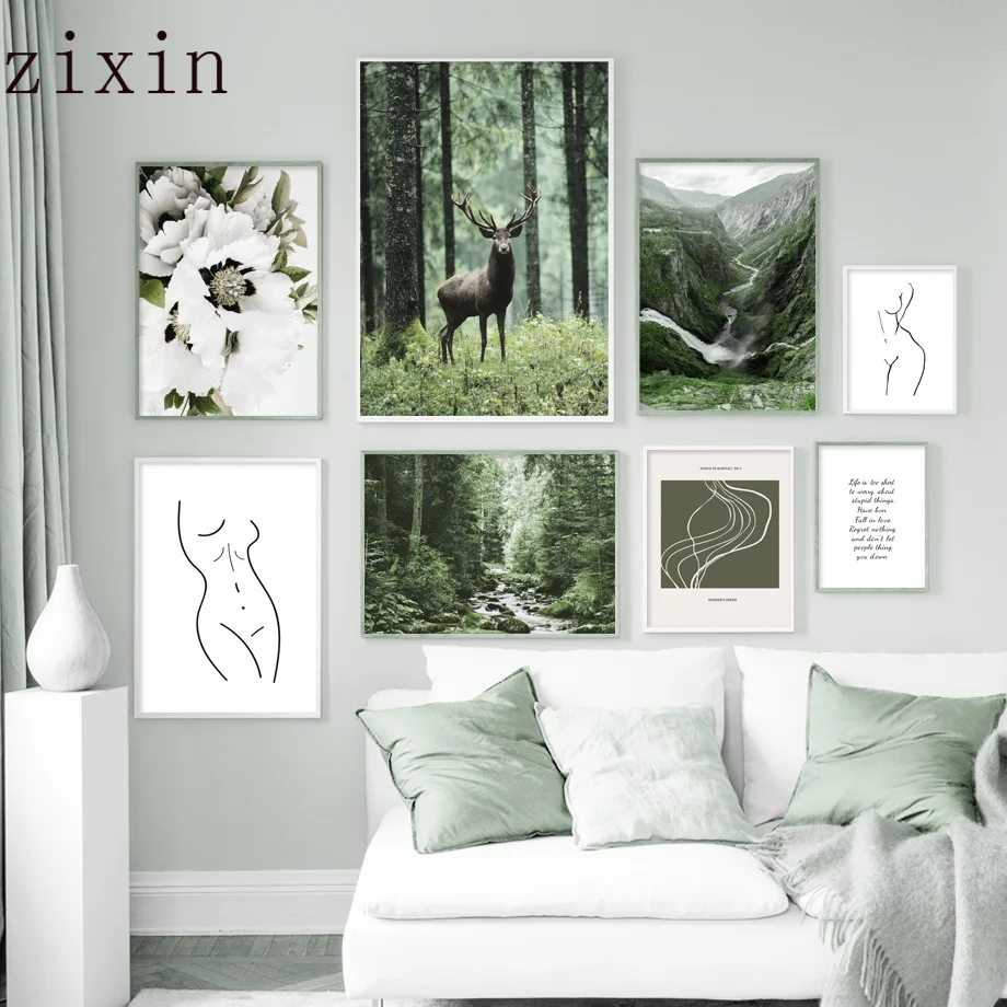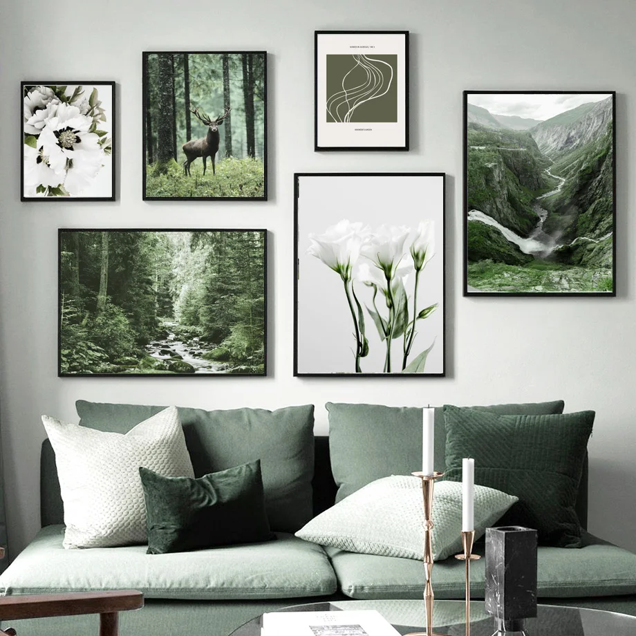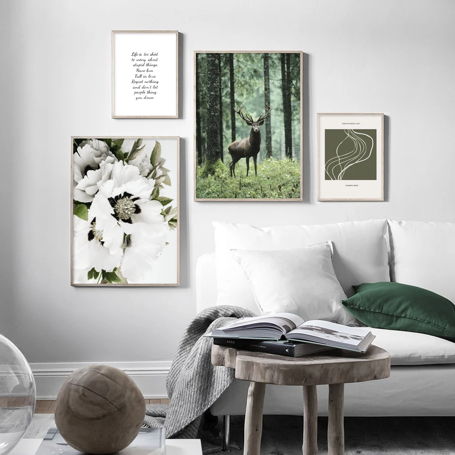 Белый цветок Зеленый Художественный лес олень природа настенная жив...