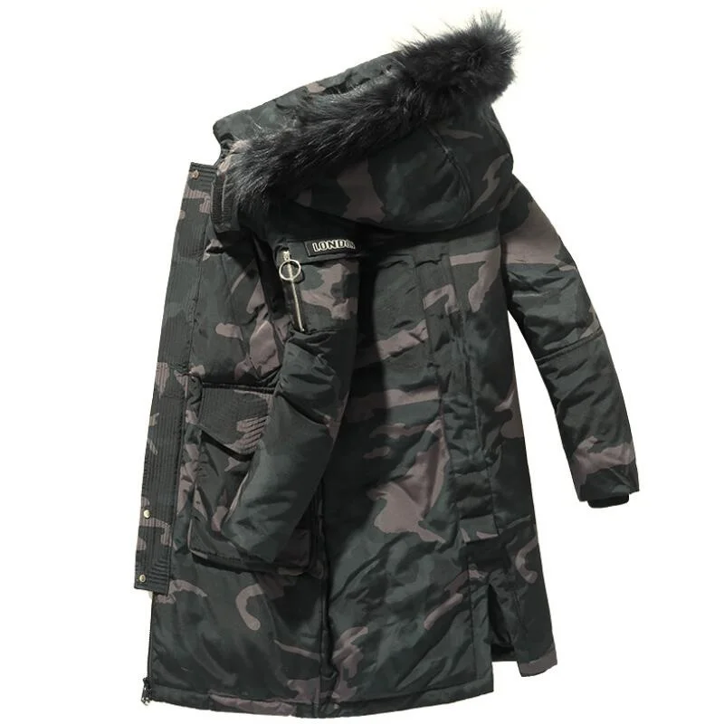 Зимняя мужская куртка с капюшоном средней длины, камуфляжная утепле...