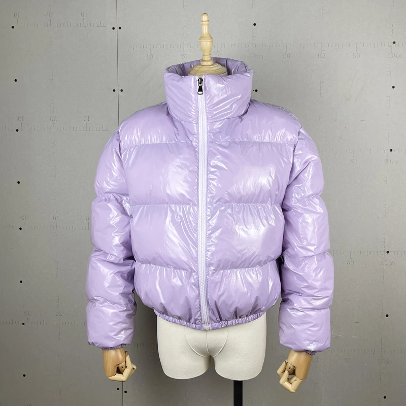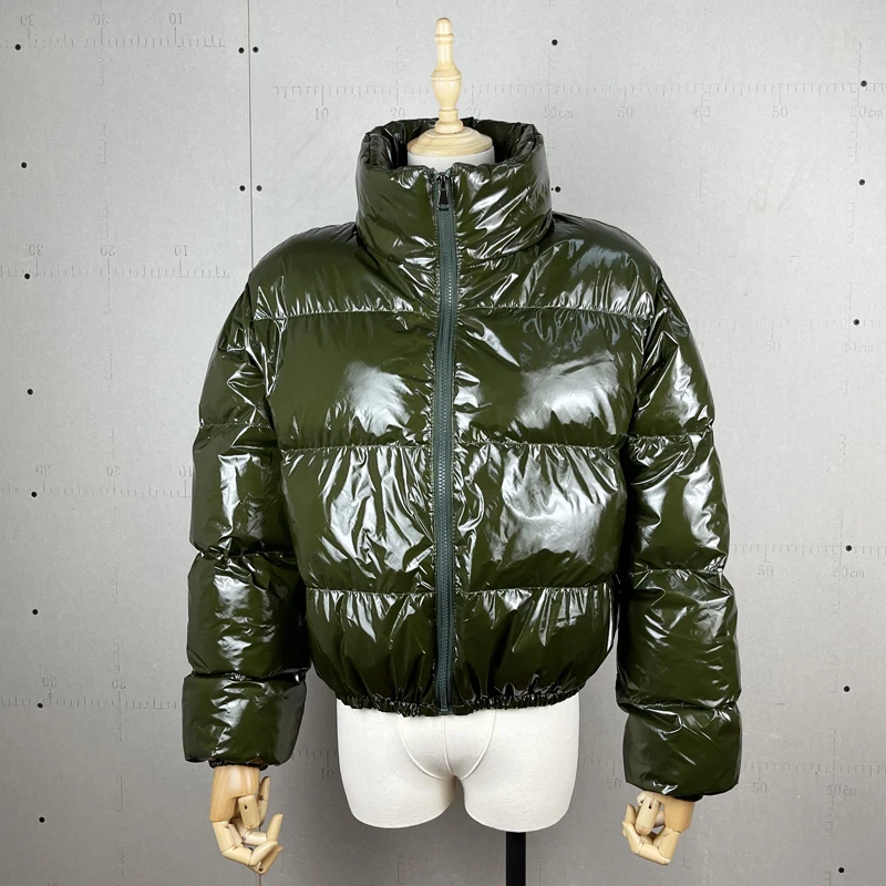 Зимнее пузырьковое пальто из лакированной кожи для женщин, большие ...