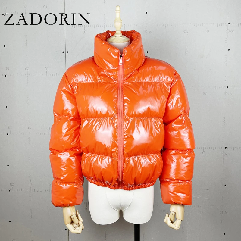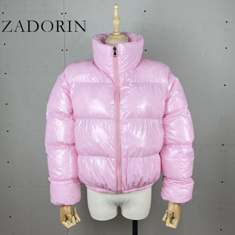 Модная зимняя черная пуховая куртка ZADORIN, женские укороченные куртки большого размера с длинным рукавом, пуховые пуховики, повседневные розовые парки на молнии