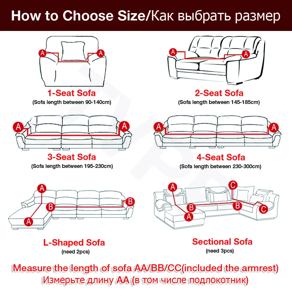 1 местный диван-крышка размер = 90-140 см 2 местный диван-крышка размер = 145-185 см 3 местный диван-крышка размер = 190-230 см 4 местный диван-крышка размер = 235-300 см (Каждая часть вашего дивана должна купить 1 шт., пожалуйста, выберите количество и подходящий размер в качестве измерительного руководства)
