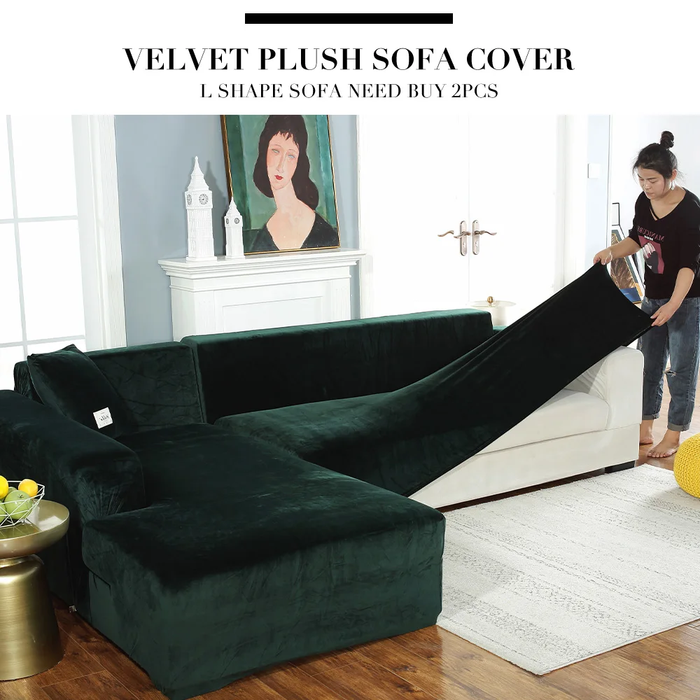 Бархатный эластичный плюшевый чехол для дивана в гостиную, растягивающийся чехол для 1234-местного углового дивана, чехол для L-образного дивана, необходимо купить 2 шт.