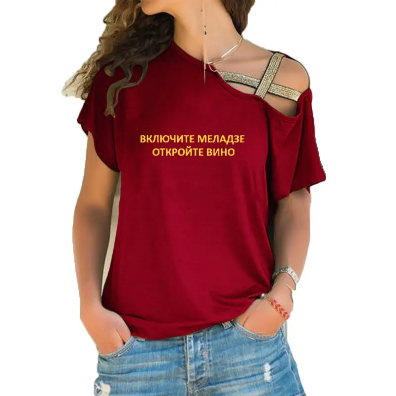 Футболка женская с коротким рукавом, асимметричная, перекрестная