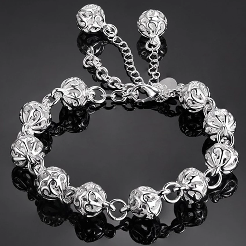 925 печать 8 мм пустотелые браслеты с шариками для женщин очаровательные браслеты свадебные изысканные роскошные модные ювелирные изделия 2021 ювелирные изделия