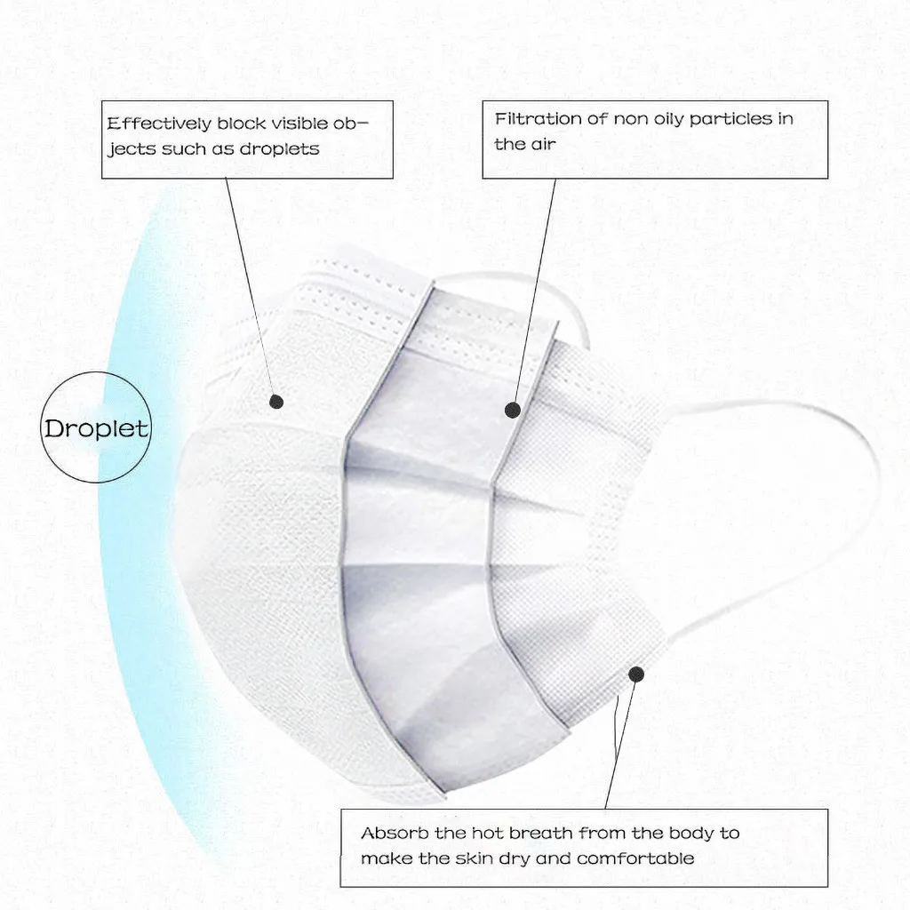 50 шт., одноразовые разноцветные маски для лица с ушными петлями