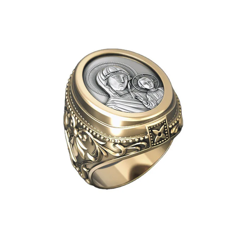 Мужское кольцо с изображением Богородицы в стиле ретро