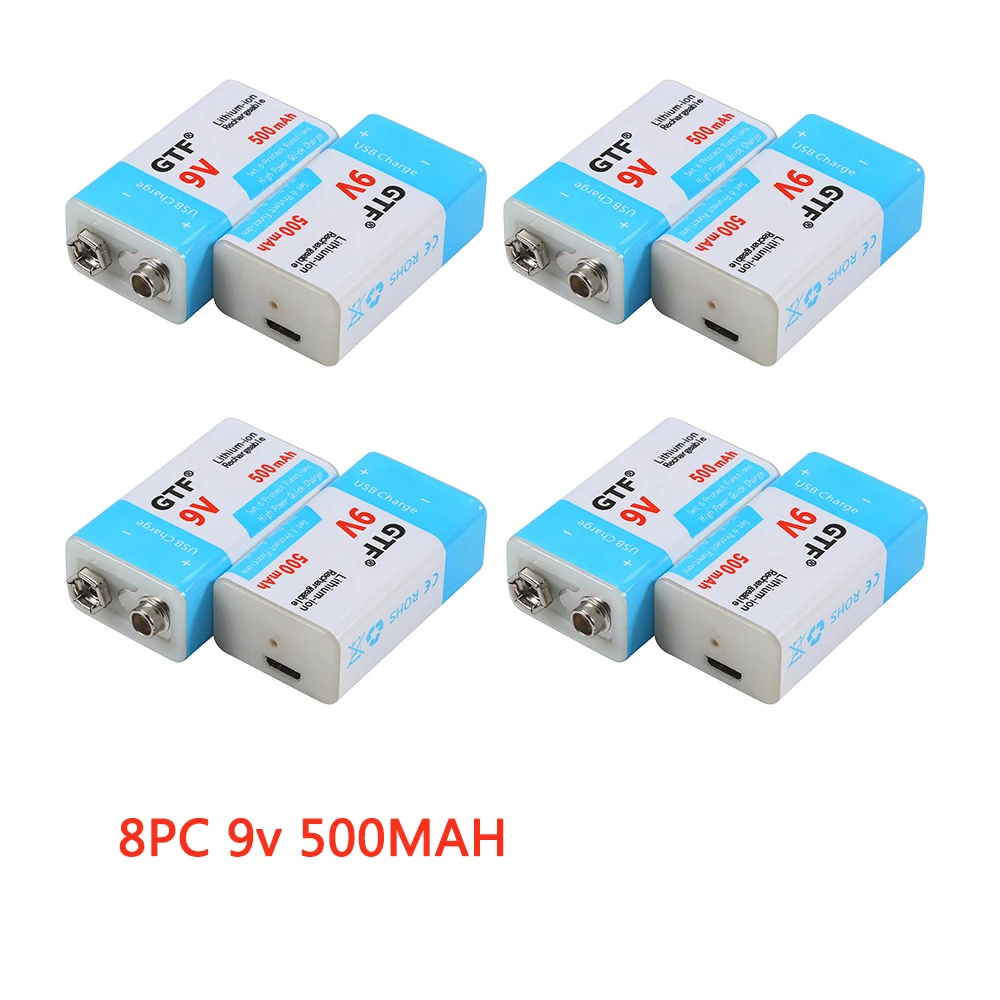 Литий-ионная аккумуляторная батарея, 4 шт., 9 В, 500 мАч, micro usb, 9 В литиевая для мультиметра, микрофона, игрушки, пульта дистанционного управления, ktv us