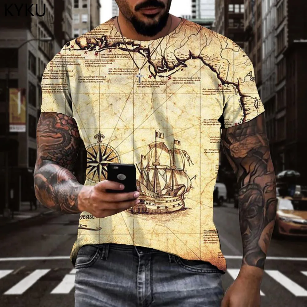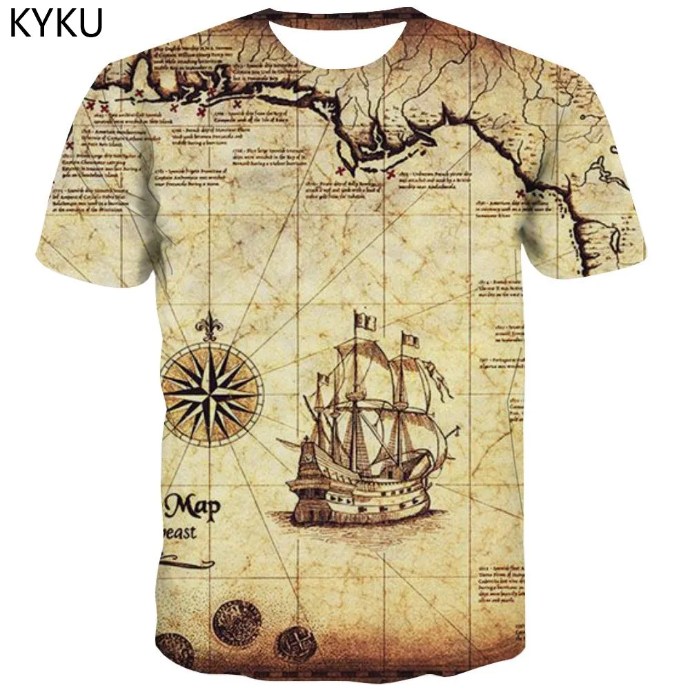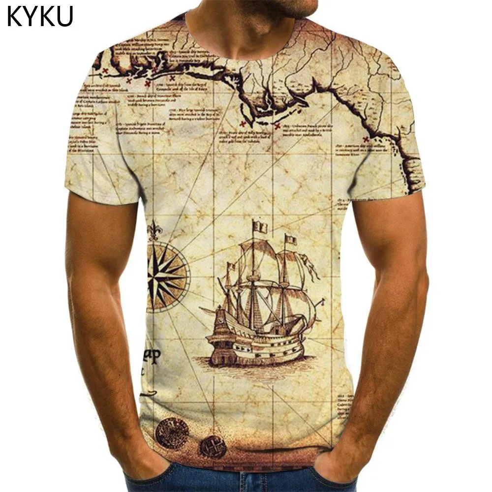 Мужская футболка с принтом KYKU, Повседневная футболка с коротким рукавом, с принтом морских волн и компасов, лето 2019
