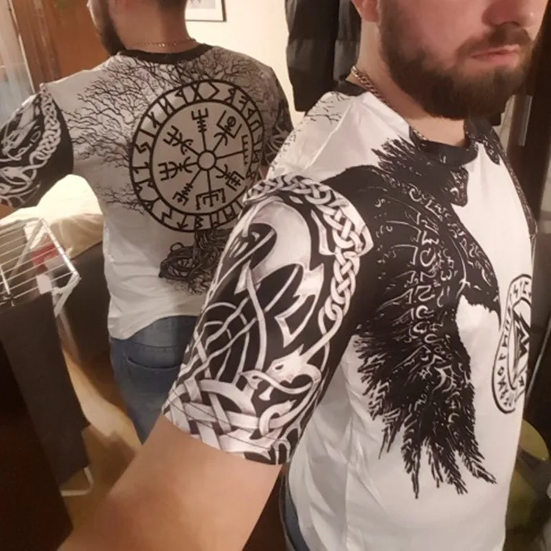 Футболка мужская с 3D-принтом символа викинга-ворона, модная рубашк...