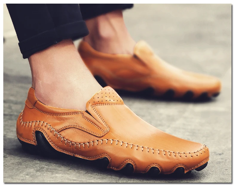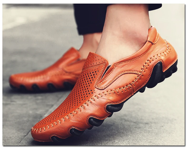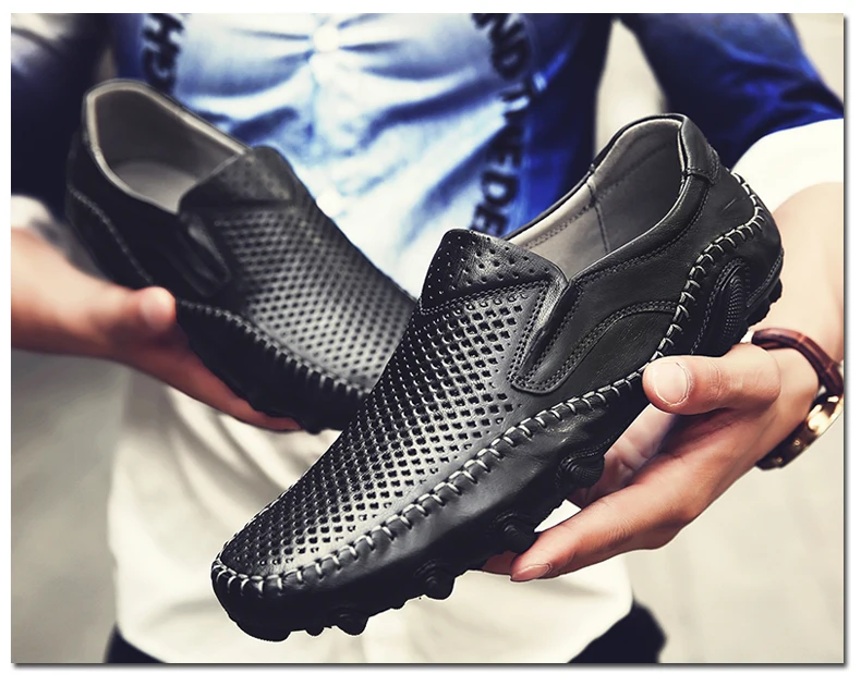 Кроссовки мужские из натуральной кожи, летние лоферы, повседневная обувь ручной работы, с вырезами, винтажные, для вождения, большие размеры 38-46