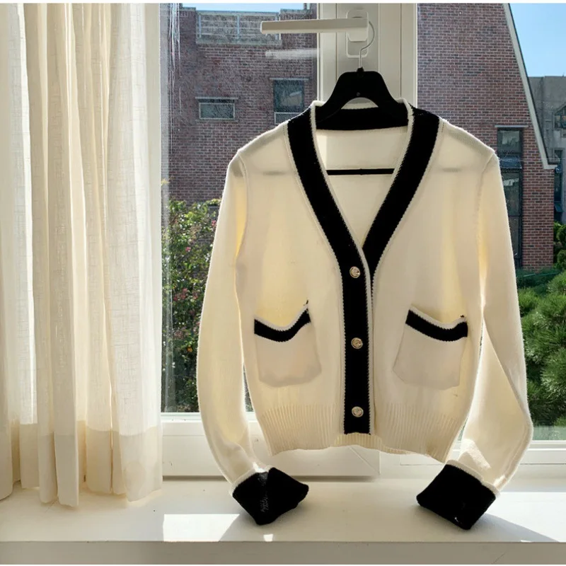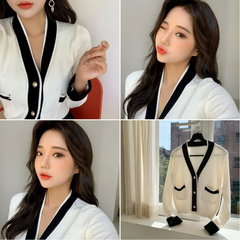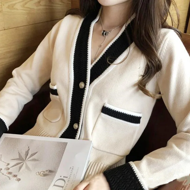 Осень 2021, модный вязаный кардиган, свитер, корейский женский свободный жакет с длинным рукавом, Повседневная вязаная кофта с V-образным вырезом, кардиган, топы