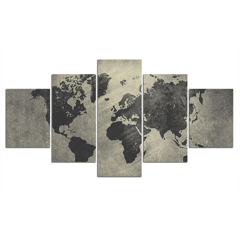 5 панелей абстрактная карта мира модульное настенное Искусство Холс...