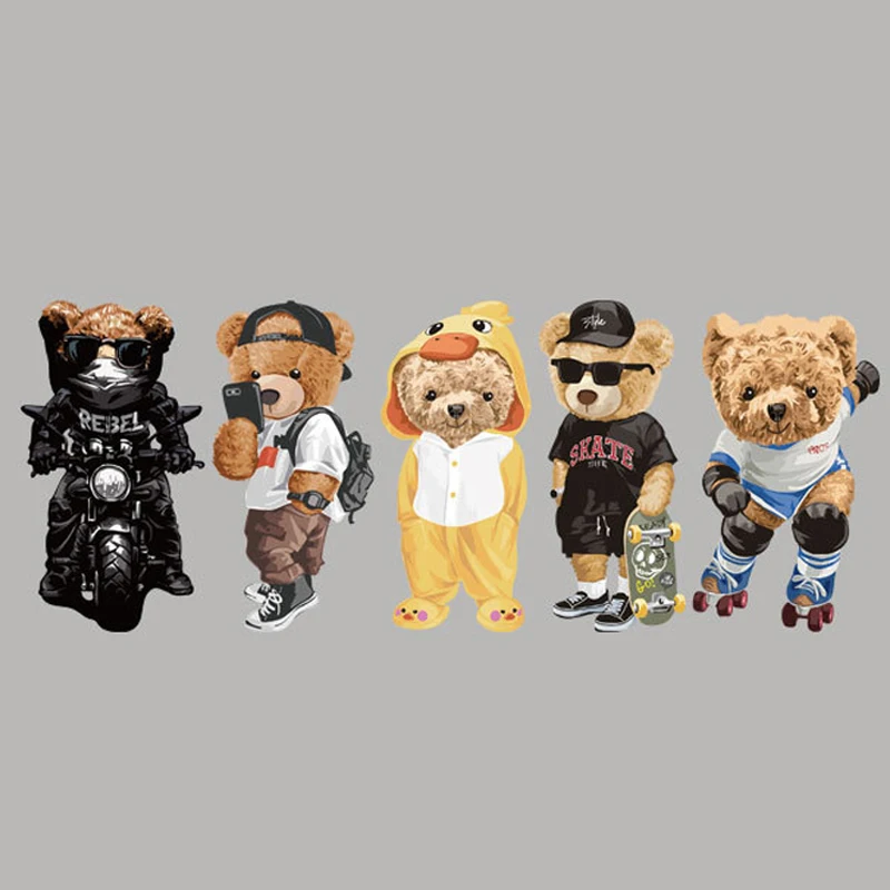 Симпатичные наклейки с медведем, нашивки для одежды, наклейка для глажки утюгом, виниловая передача тепла, ткань для одежды, полосы