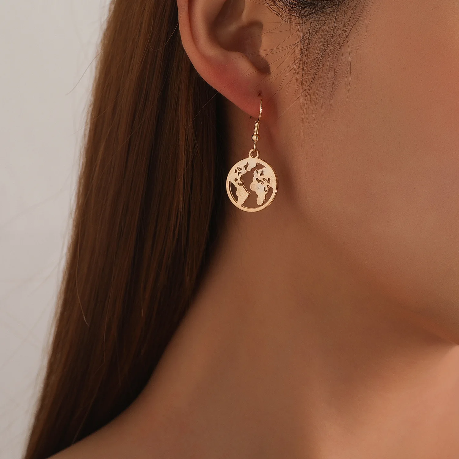 Винтажные серьги с изображением карты мира, серьги с изображением земли, Женские Ювелирные изделия
