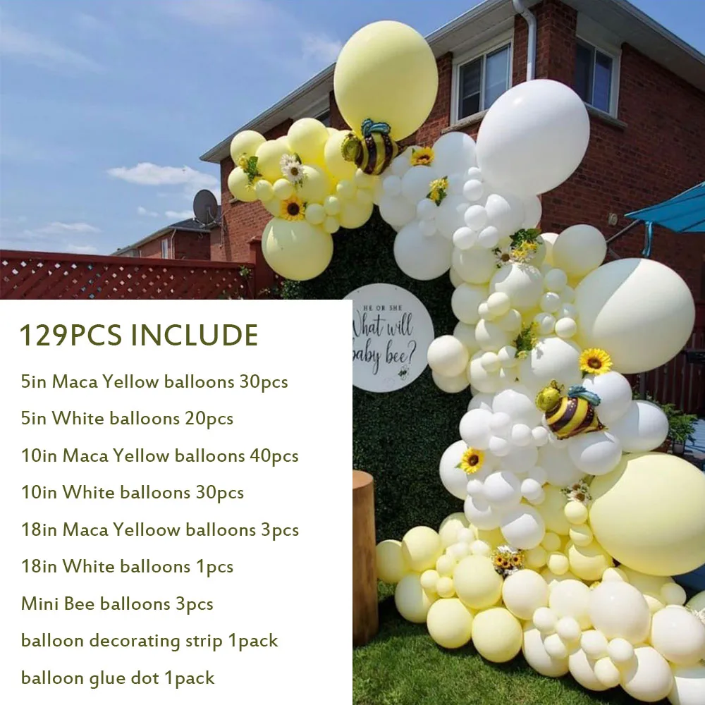 129 шт., гирлянда из желто-белых пчелиных воздушных шаров