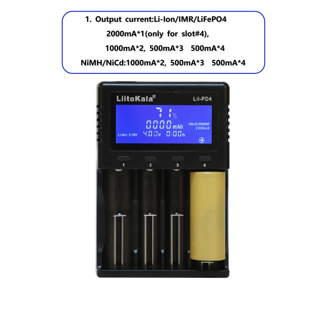 Lii-PL4-это новое многофункциональное умное зарядное устройство с 4 слотами, запущенное LiitoKala. Низкая цена, в то время как четыре типа батарей могут быть применены (Li-ion 4,2 V/4,35 V Ni-MH 1,2 V Li-Fe 3,6 V), и различные размеры батарей.