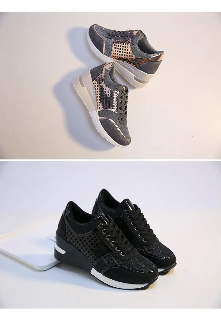 Женские кроссовки на танкетке, дышащие, на шнуровке, Вулканизирован...