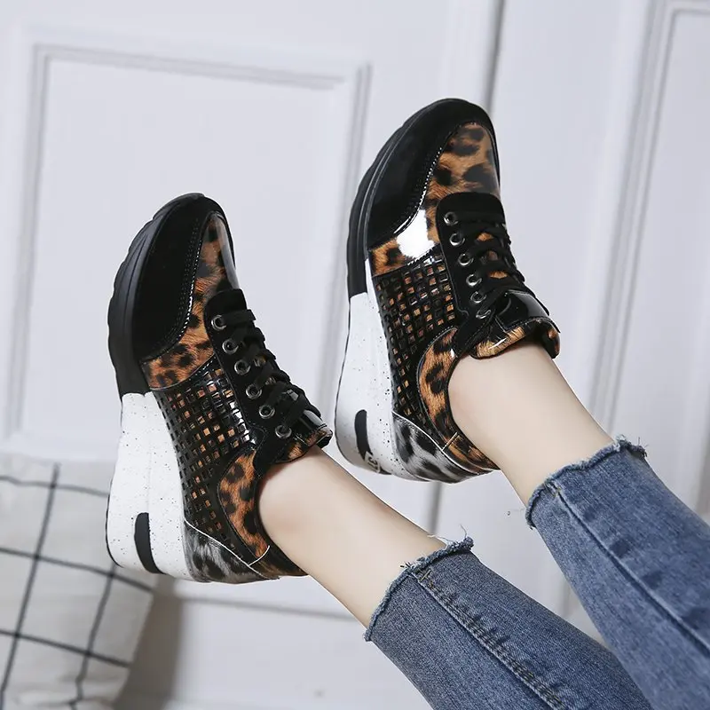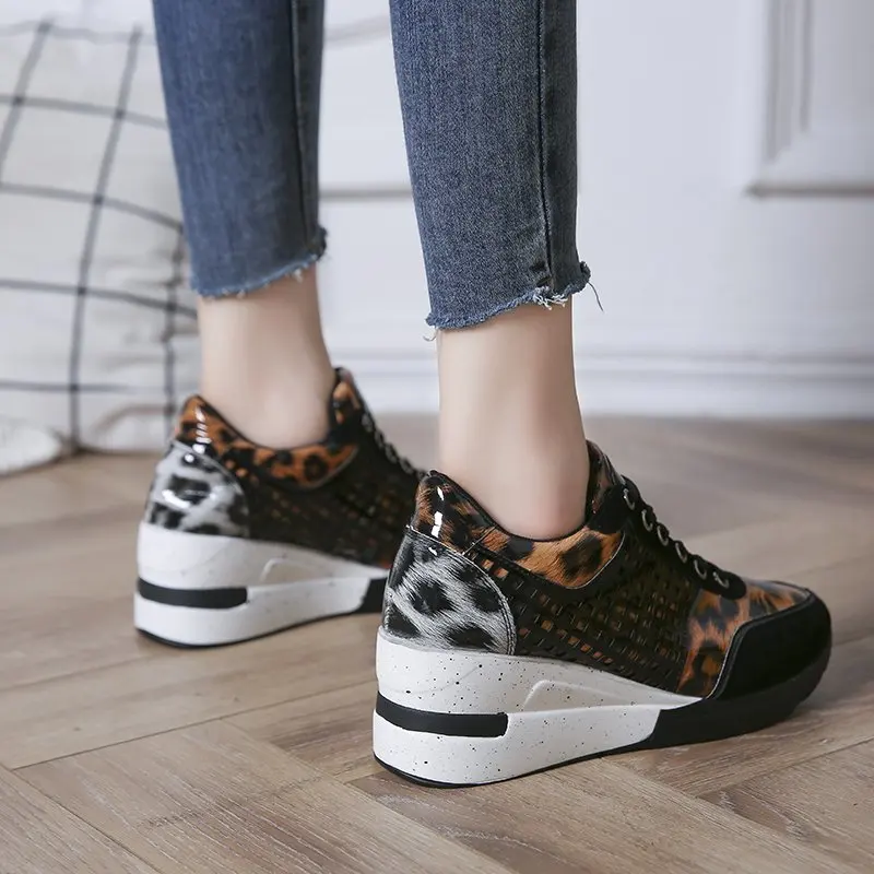 Новые товары для осени, женские леопардовые туфли, повседневная женская обувь, студенческие сникерсы большого размера, дышащие уличные кроссовки