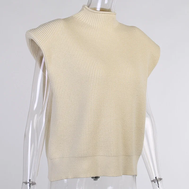 Женский вязаный свитер-водолазка без рукавов, с наплечниками