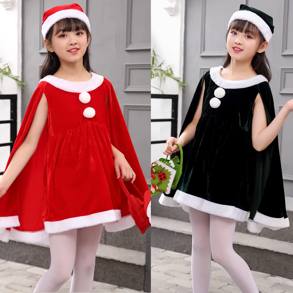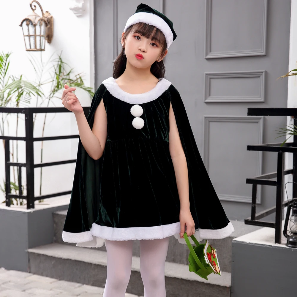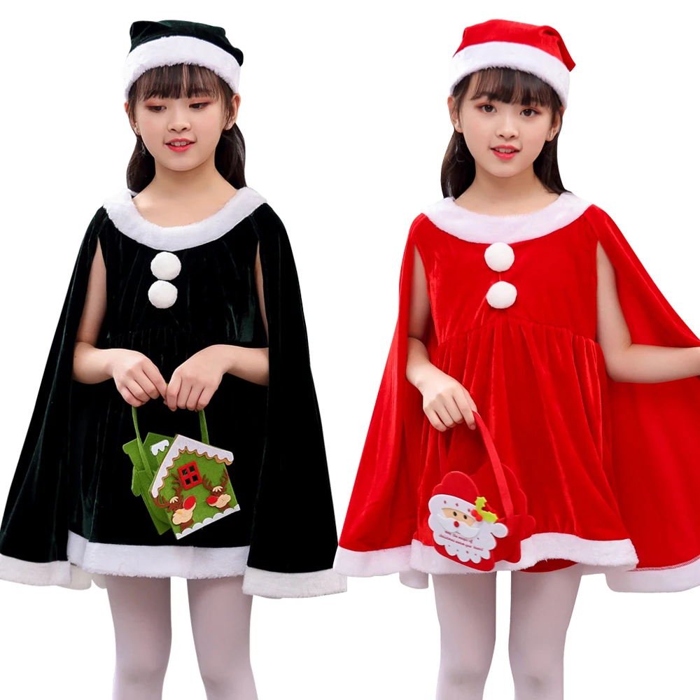Детская Рождественская красно-черная накидка с шортами в стиле аниме, шапка Санта-Клауса, косплей-костюм на осень и зиму для детей на новый год