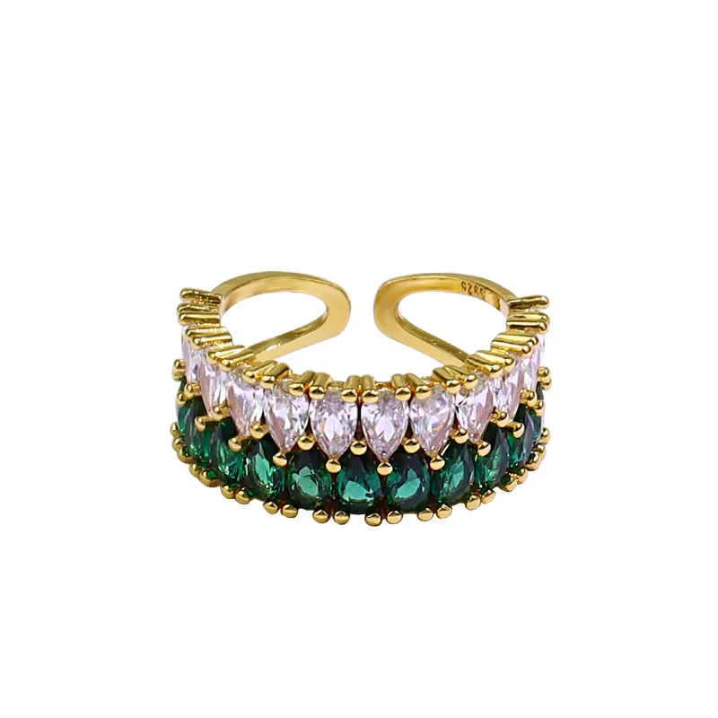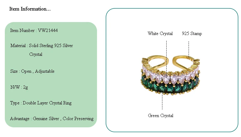 Женское Двухслойное кольцо Viwisfy, из серебра 925 пробы, с зеленым и белым кристаллом, регулируемое, VW21444