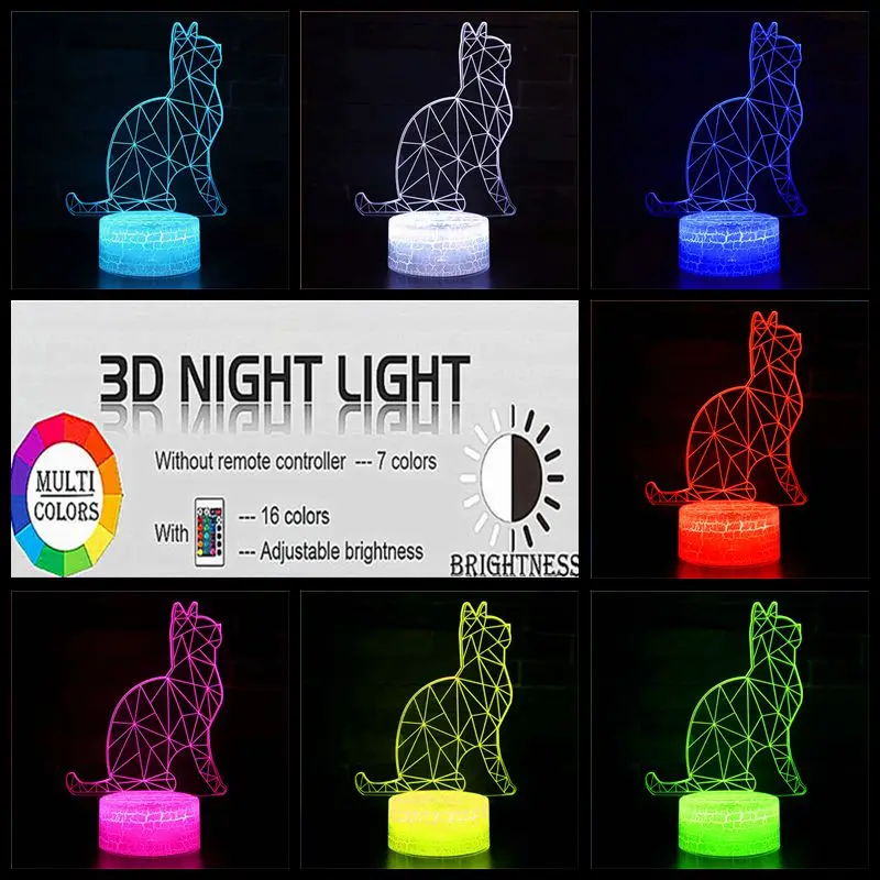 Мультяшный Кот 3D ночник светодиодсветодиодный USB иллюзия Лампа многоцветный сенсорный пульт дистанционного управления лампа для домашнего декора детские подарки Прямая поставка