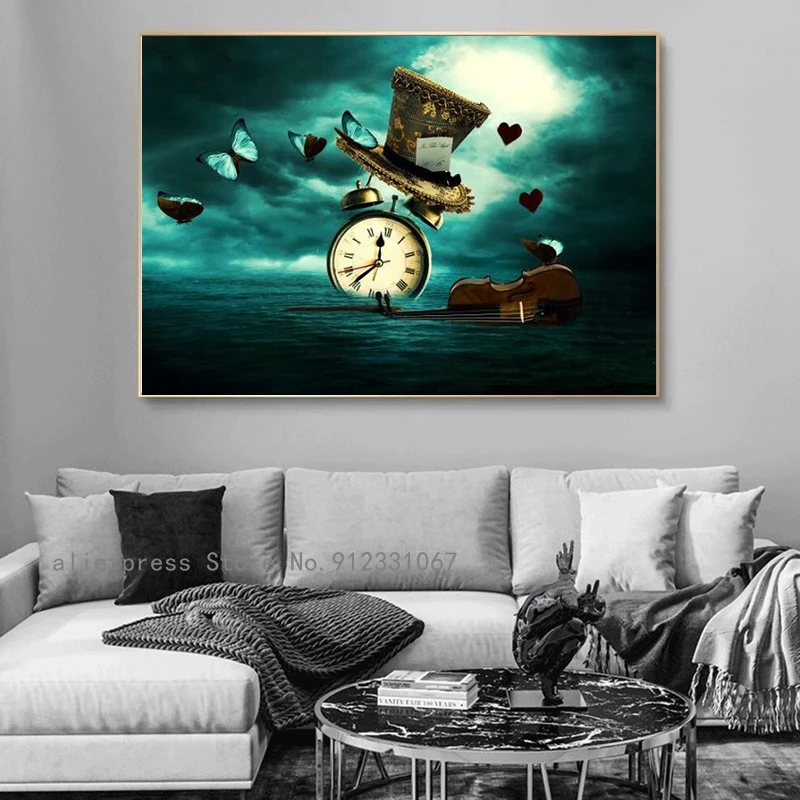 Часы Скрипка бабочка шляпа креативная картина Сальвадор Дали Сюрреализм холст живопись современный настенный художественный плакат Принт домашний декор
