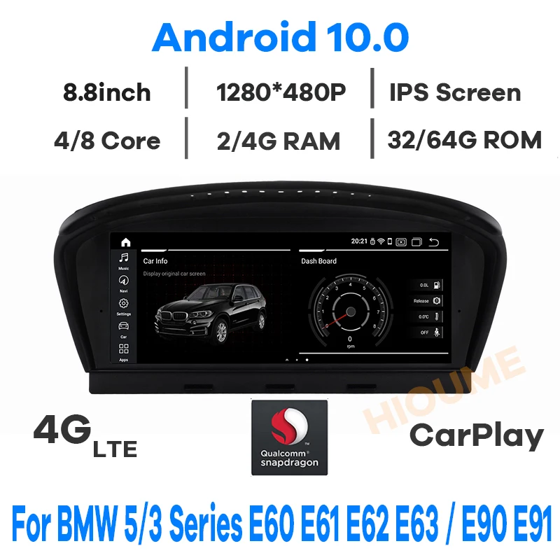 Автомобильный мультимедийный плеер Qualcomm Snapdragon, плеер на Android 11, с GPS, радио, для BMW 5, E60, E61, E62, E63, 3 серии, E90, E91, CCC, CIC, 8,8 дюйма