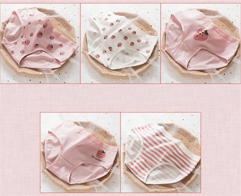 6 шт.компл. красивое нижнее белье с принтом клубники хлопковые трус...