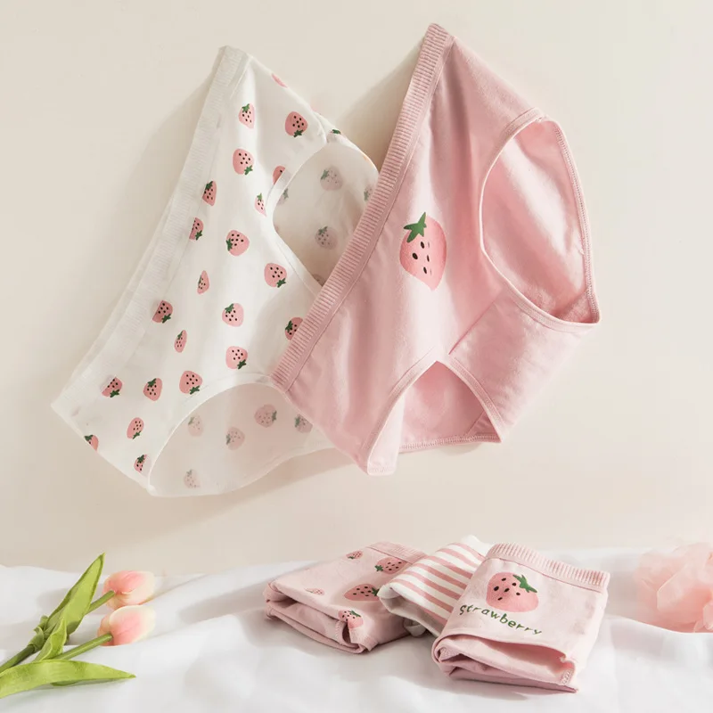 3 шт. розовые женские трусики клубники хлопковые трусы для девочек;...