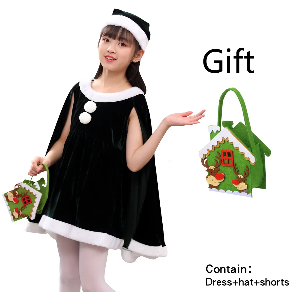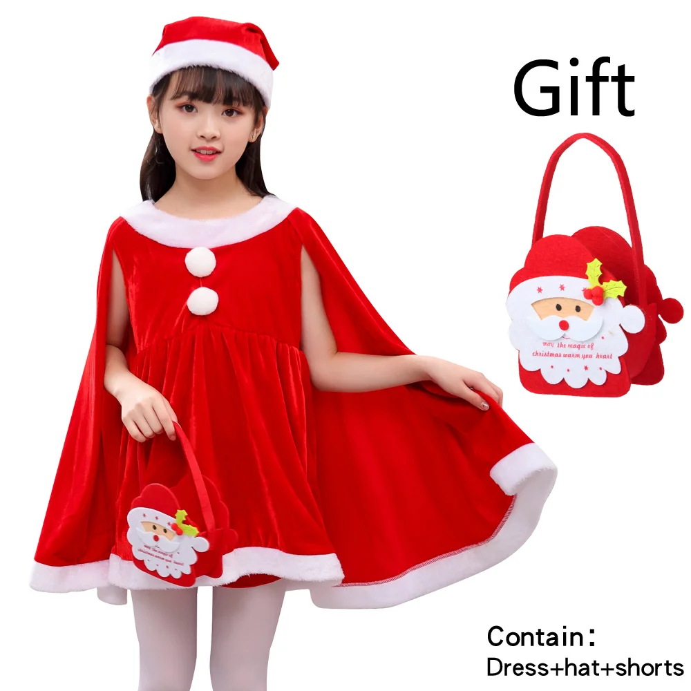 Рождественский костюм для мальчиков и девочек, красное платье Санта-Клауса с шортами, плащ, детская одежда для косплея, одежда для девочек 3-12 лет