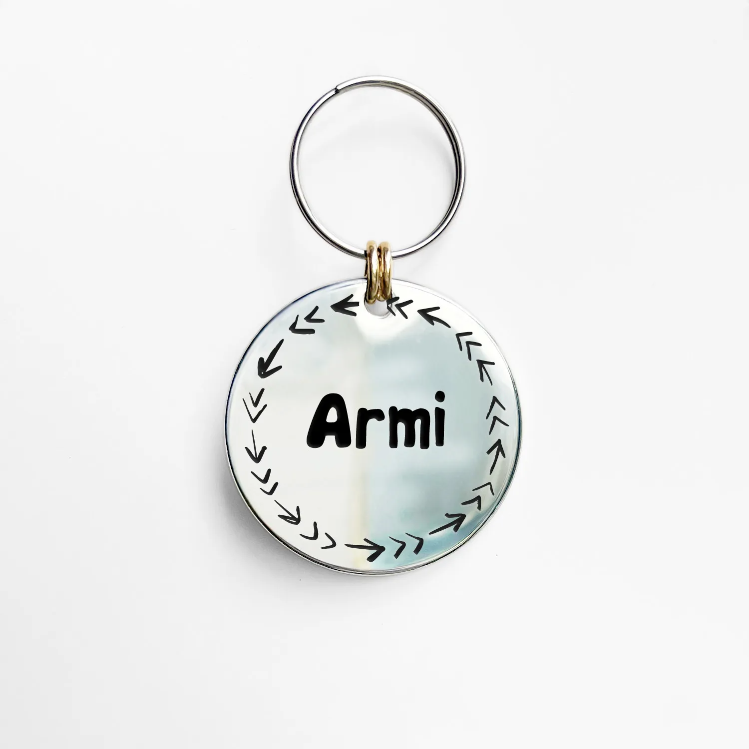 006 Персонализированная идентификационная бирка для кошек, собак, венок, табличка, металлические круглые бирки на заказ с гравировкой с обеих сторон