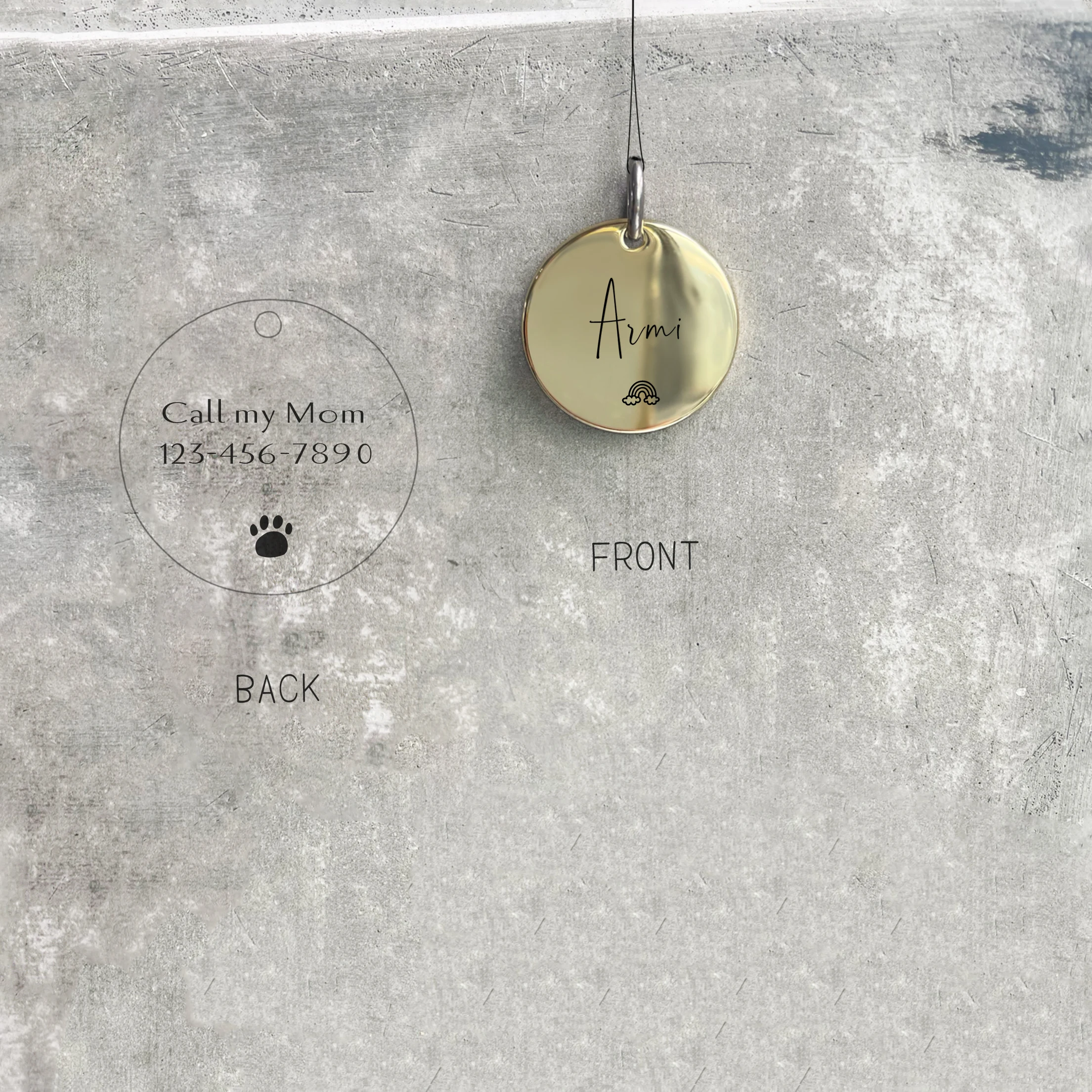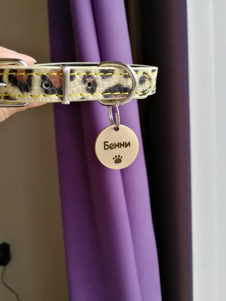 007 Персонализированная индивидуальная идентификационная бирка для кошек и собак, Металлические Блестящие латунные круглые бирки с гравировкой с обеих сторон