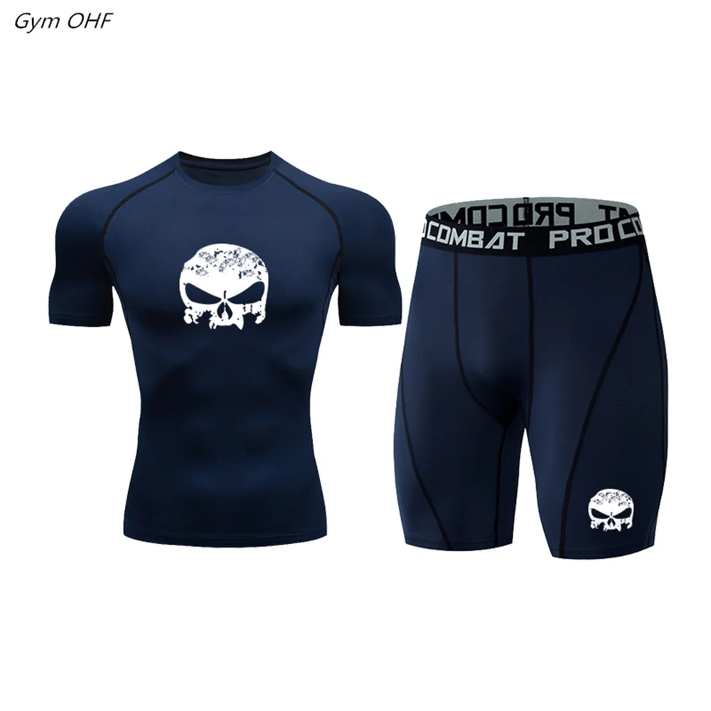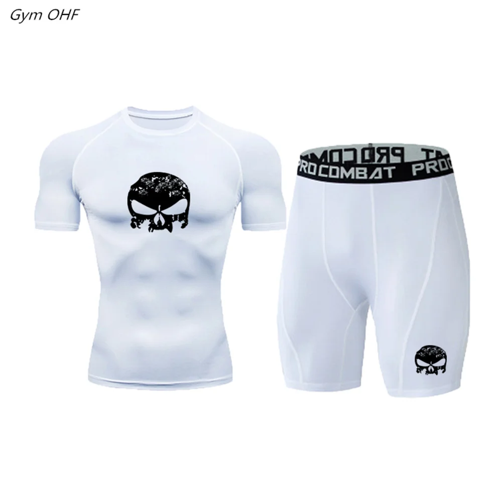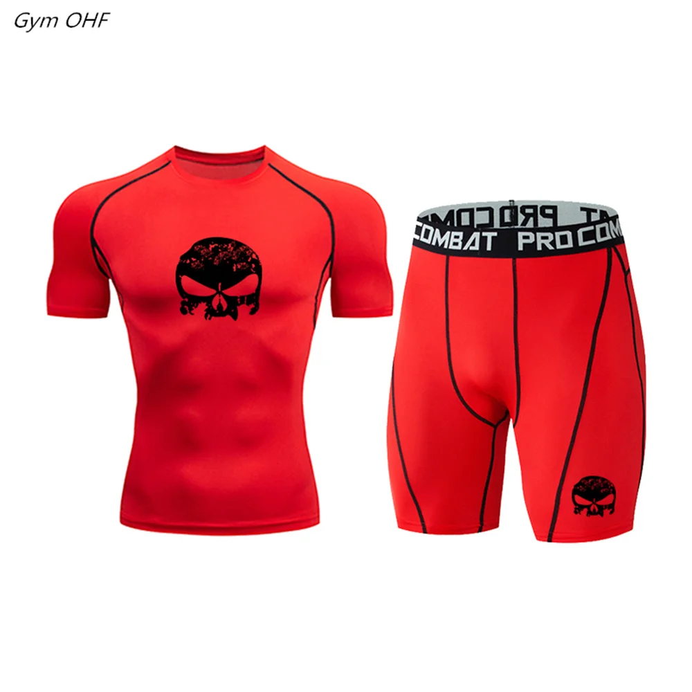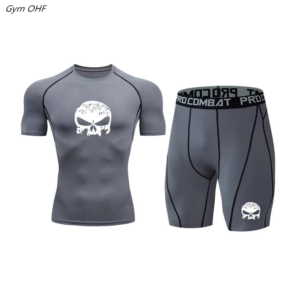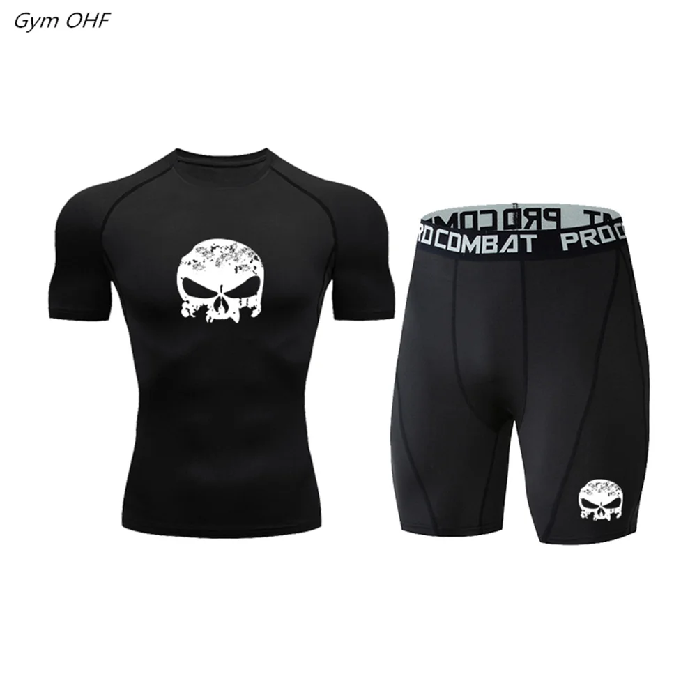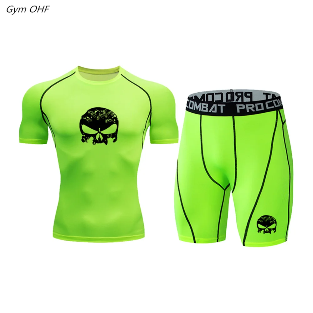 Мужской спортивный костюм, компрессионная футболка, леггинсы, быстросохнущая Спортивная одежда для бега, бега, тренажерного зала, фитнеса, тренировочный спортивный костюм для ММА, мужская спортивная одежда, 2 шт.комплект