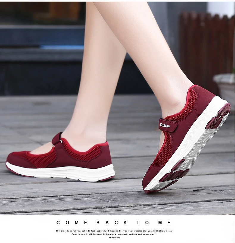 Женские повседневные туфли, летняя новая однотонная сетчатая дышащая обувь на липучке для прогулок, удобная Легкая женская обувь 2021