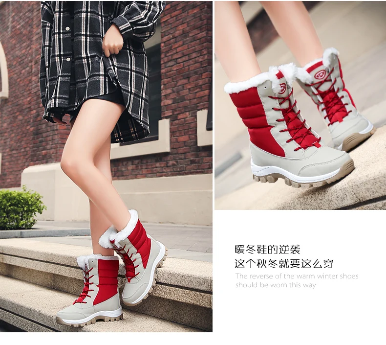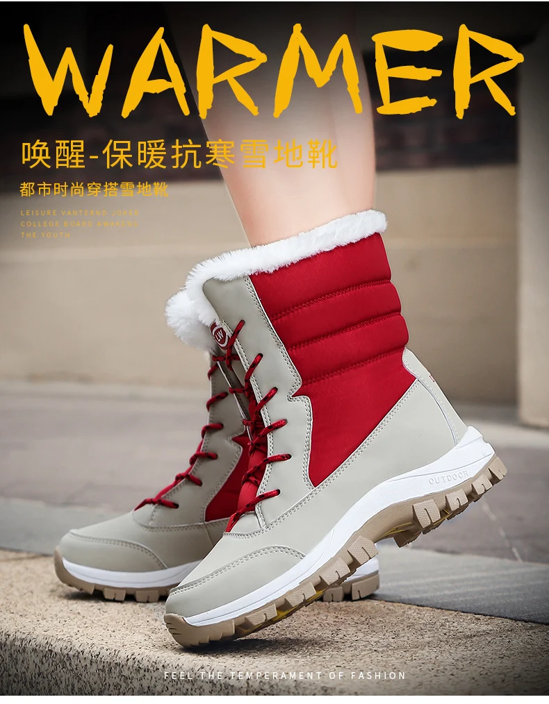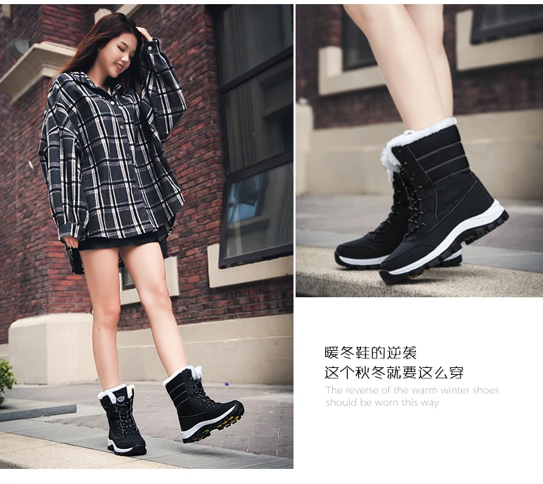 Водонепроницаемые зимние ботинки, женская обувь с мехом, Зимние Теп...