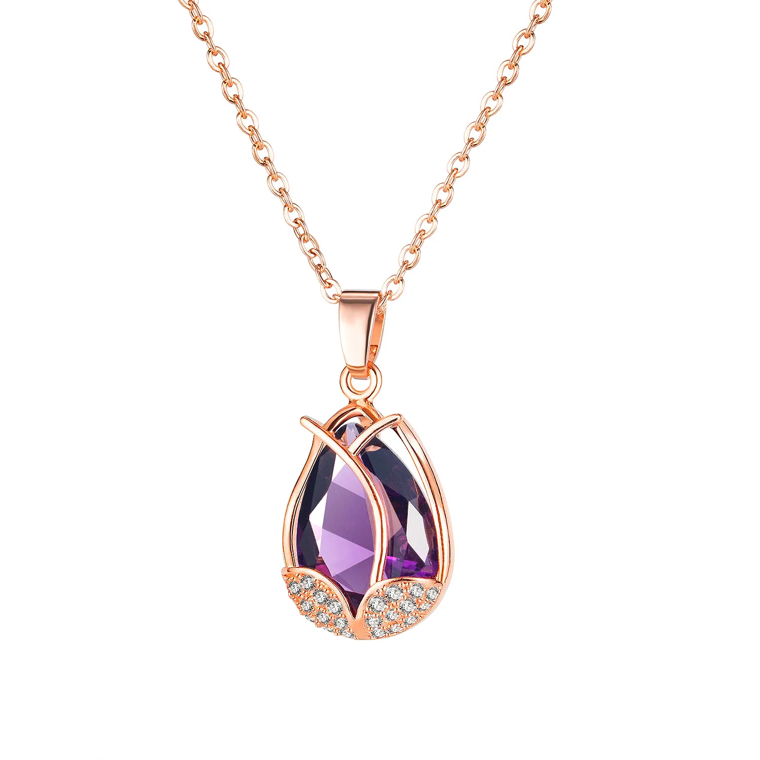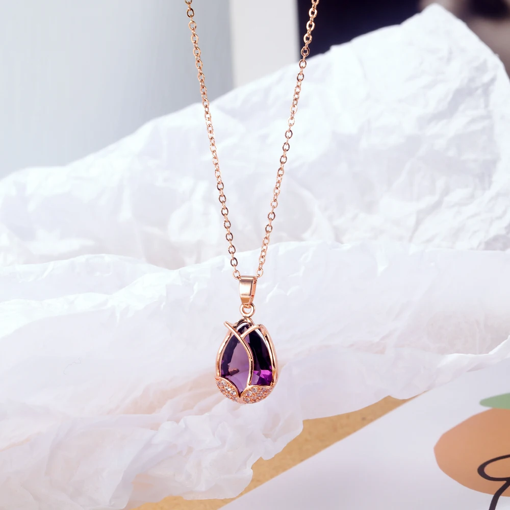 Ожерелье-цепочка JIALY из нержавеющей стали 316L, подвеска в виде розового леса, тюльпана с инкрустацией AAA CZ для девочек и женщин, ювелирные изделия