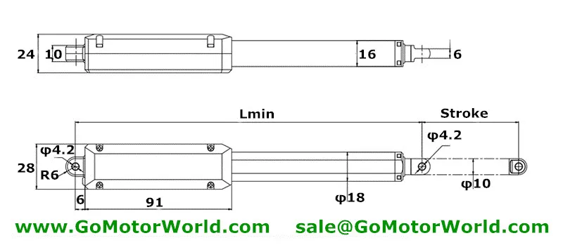 Lmin означает, что длина в разложенном виде линейный привод 100% полностью убирается, в то же время, он будет касаться хвост ограниченный переключатель и автоматически останавливается, очень безопасно.