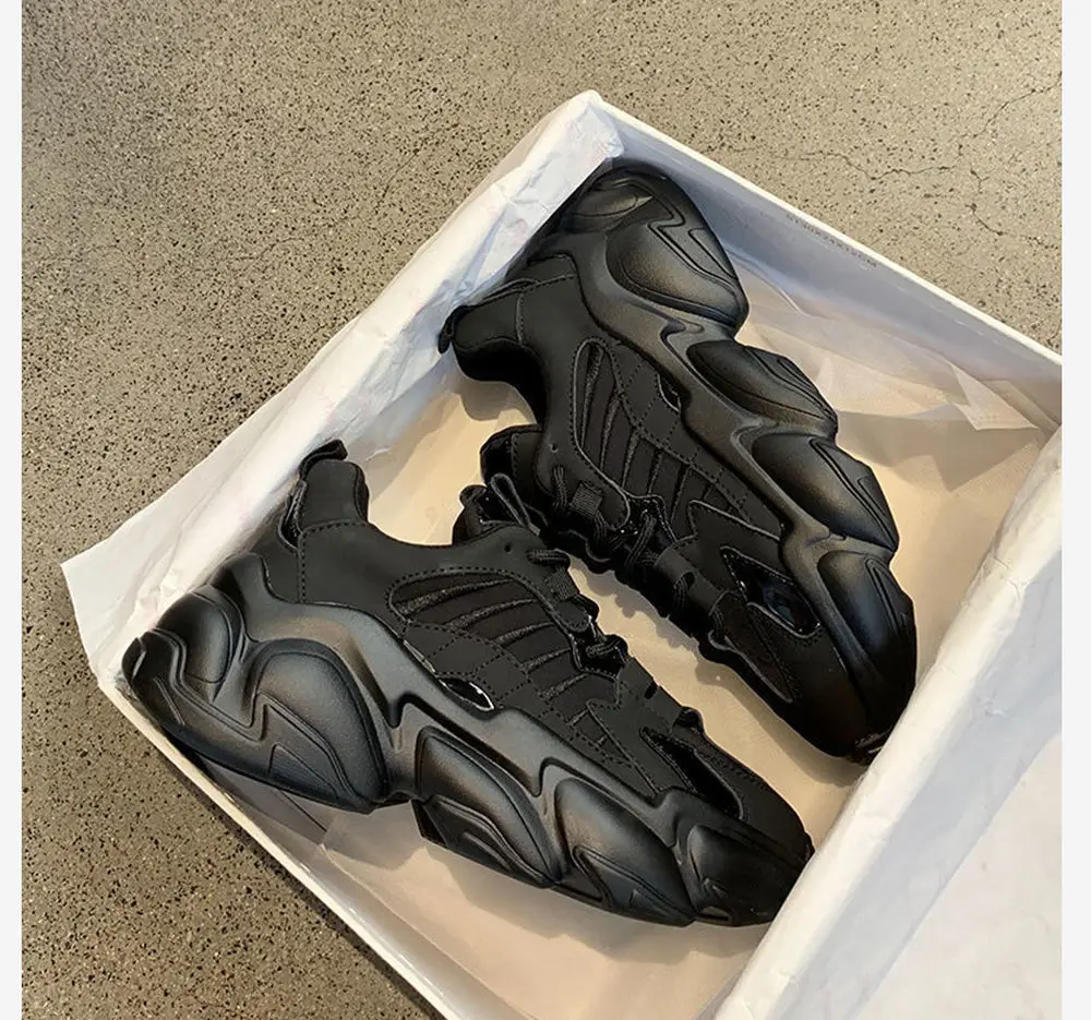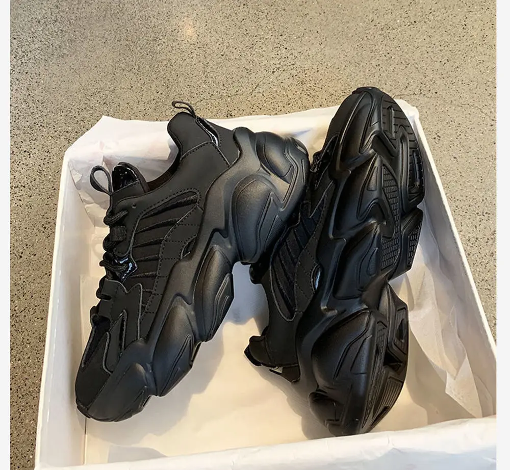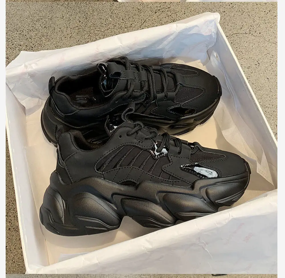 RASMEUP Осень-Зима Черные спортивные женские кроссовки на толстой п...