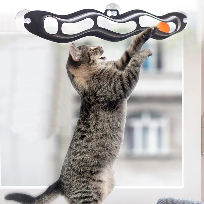 Продукт изготовлен из высококачественного и безопасного материала, может быть прикреплен к стене или окну, благодаря привлекательному спортивному мячу кошка может скользить по большому отверстию на трассе.