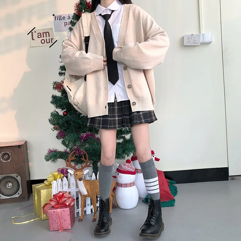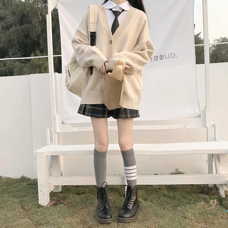 Японский модный студенческий Свободный кардиган jk с V-образным вырезом, новинка 2021, свитер, женская верхняя одежда, свитер JK, пальто, японская школьная форма